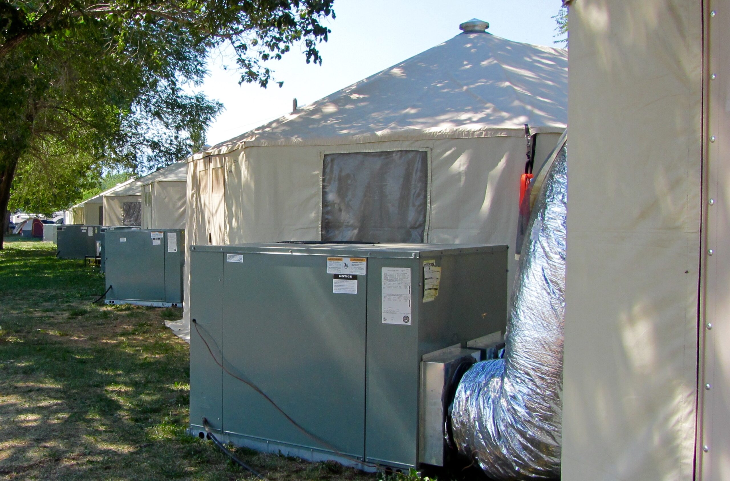 CrewZers is able to equip all of our portable shelter structures or temporary building facilities with a full range of heating, cooling, HVAC air conditioning, and ventilation products (HVAC). Our HVAC’s, when used in tandem with our insulated tents cool well below industry standards.